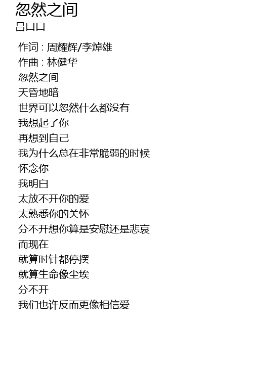 | [00:00.000] | 作词 : 周耀辉/李焯雄 |