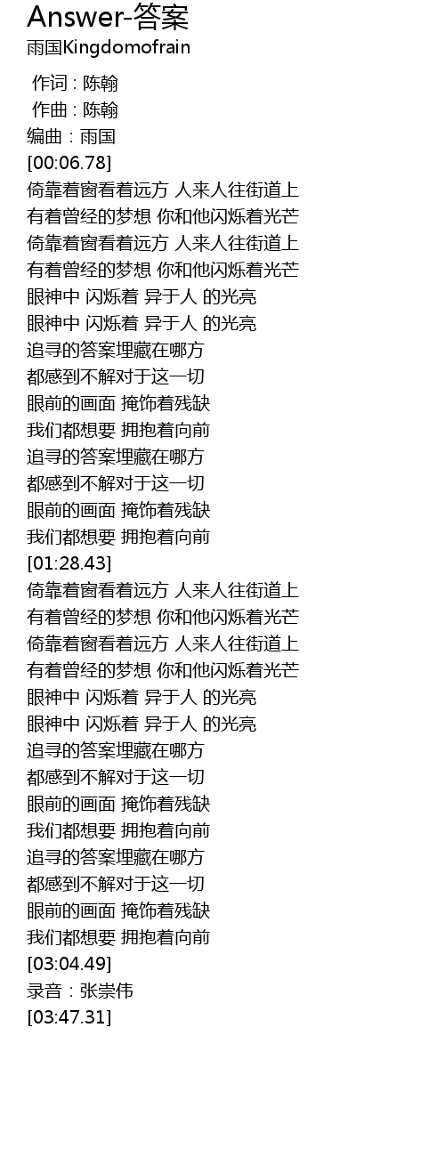 | [03:46.03] | 录音:张崇伟 |