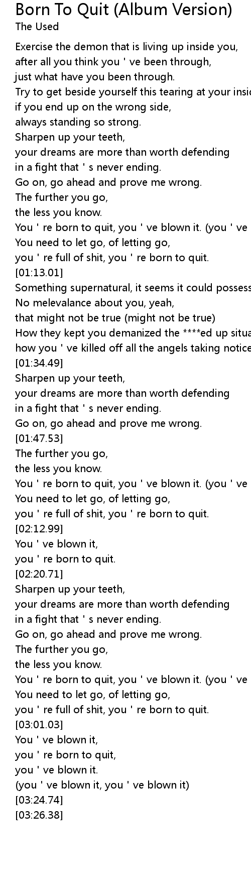 | [01:05.11] | you're full of shit, you're born to quit. |