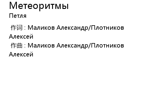 | [00:00.00-1] | 作词 : Маликов Александр/Плотников Алексей |