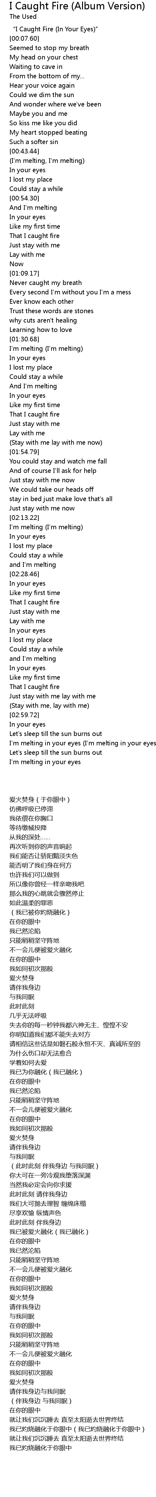 | [00:00.00] | " I Caught Fire In Your Eyes" |