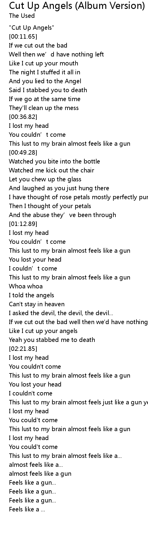 | [00:01.79] | " Cut Up Angels" |