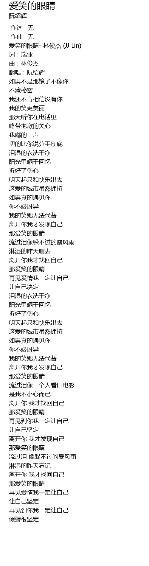 | [00:01.675] | 爱笑的眼睛- 林俊杰 (JJ Lin) |