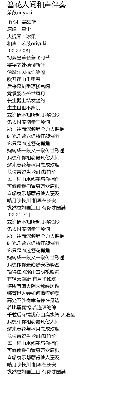 | [00:13.80] | hé shēng: fú yǐ oriyuki |