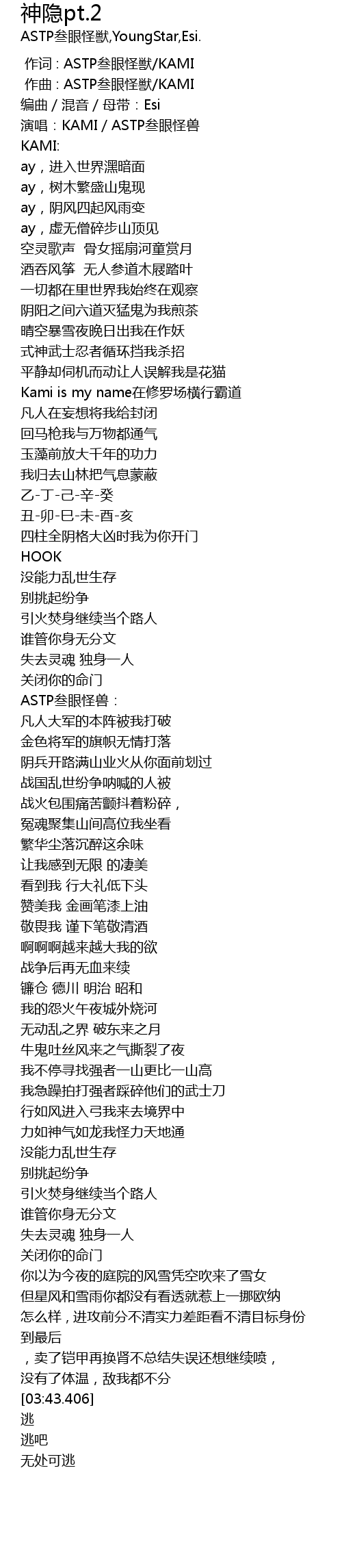 | [00:00.000] | 作词 : ASTP叁眼怪獣/KAMI |
