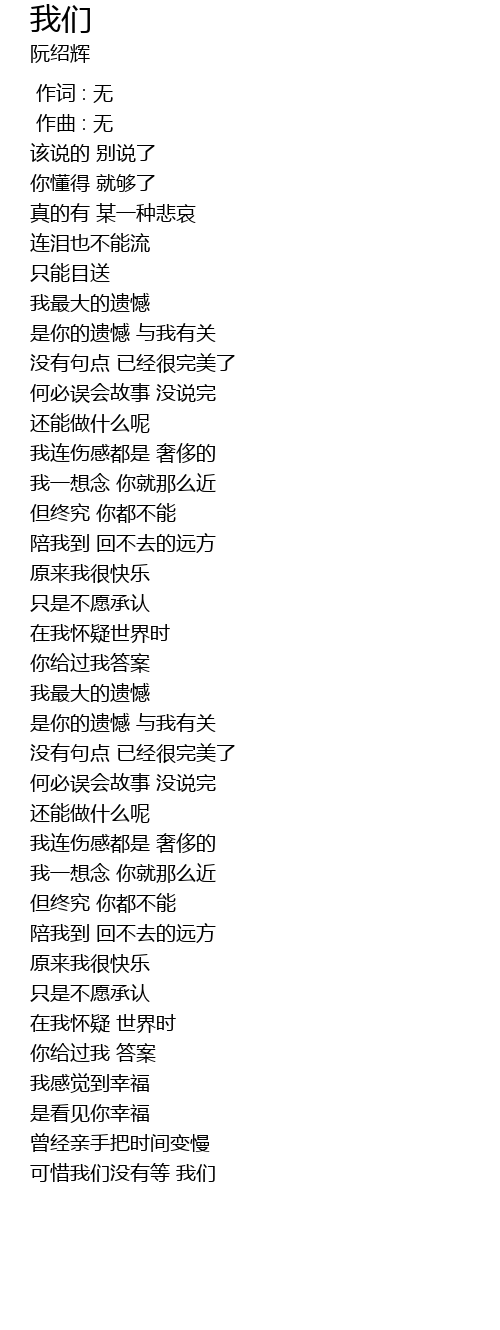 | [00:55.424] | 是你的遗憾 与我有关 |
