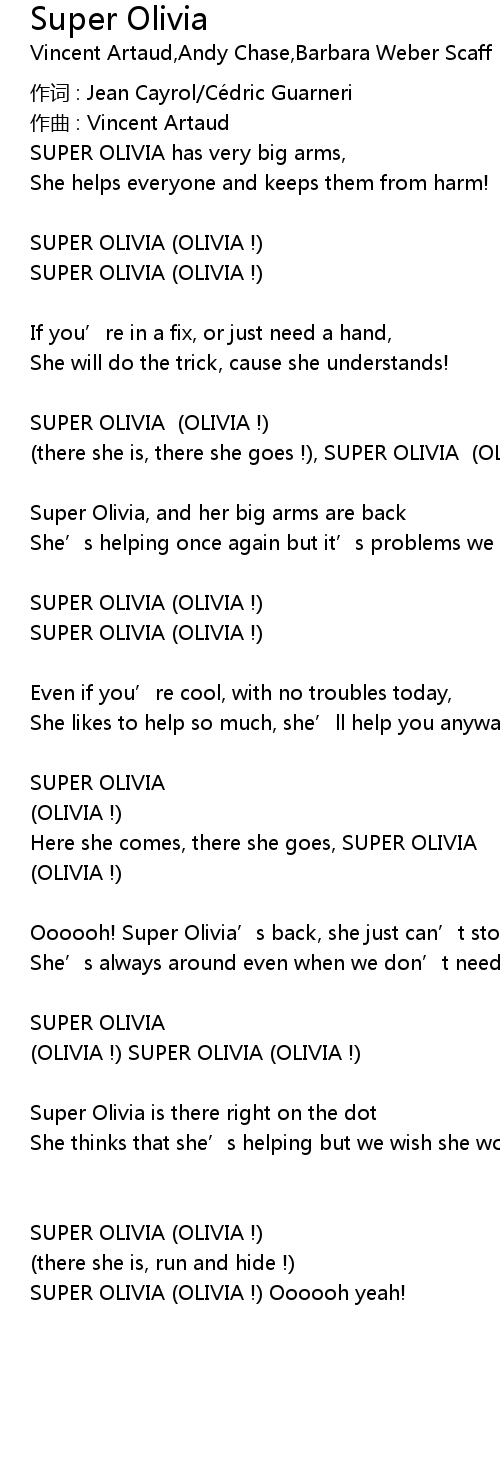 | (there she is, there she goes !), SUPER OLIVIA (OLIVIA !) | |