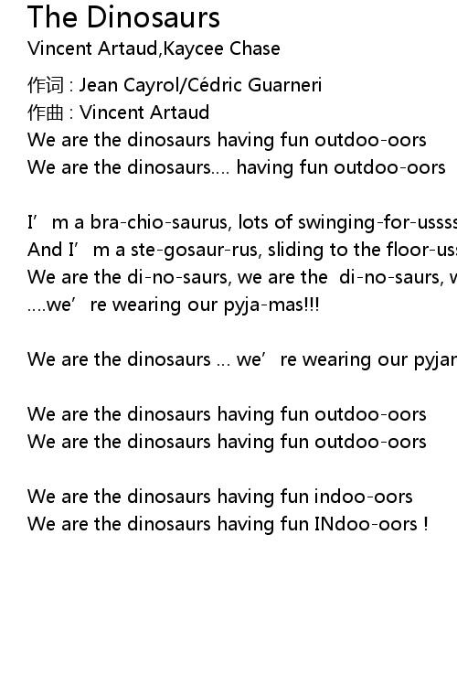 | We are the di-no-saurs, we are the di-no-saurs, we are the di-no-saurs | |