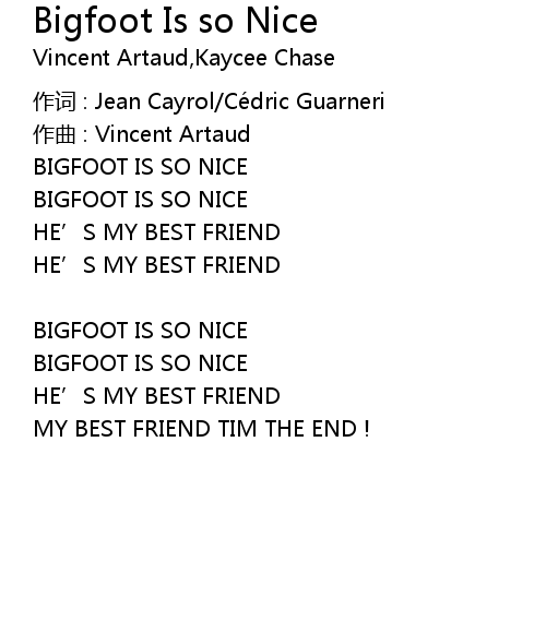 | Song | Bigfoot Is so Nice |