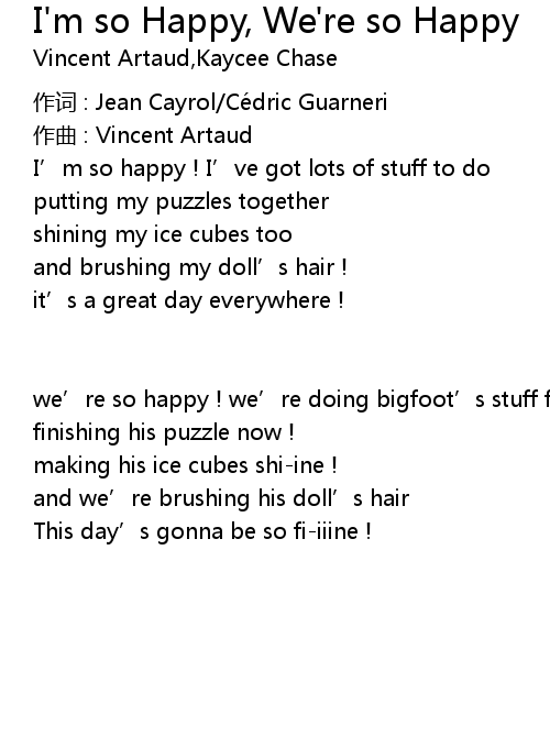 | I' m so happy ! I' ve got lots of stuff to do | |