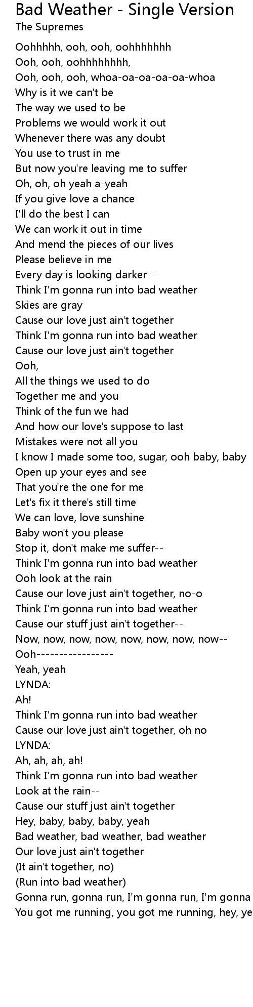 Bad weather, bad weather, bad weather |