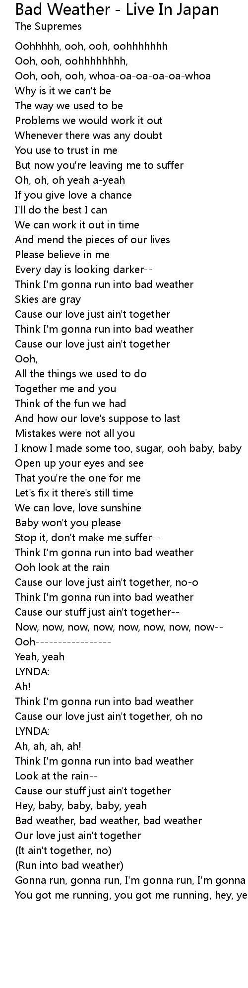 Bad weather, bad weather, bad weather |