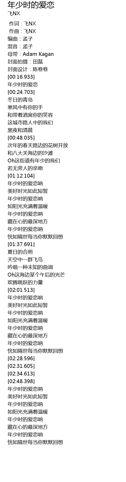 | [02:23.081] | nián shào shí de ài liàn nà |