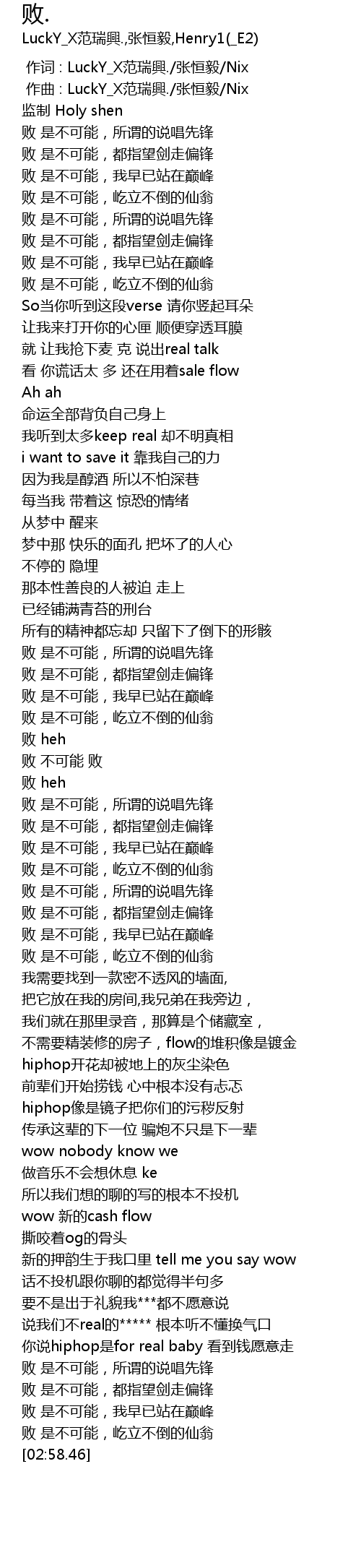 | [02:47.46] | 败 是不可能,所谓的说唱先锋 |