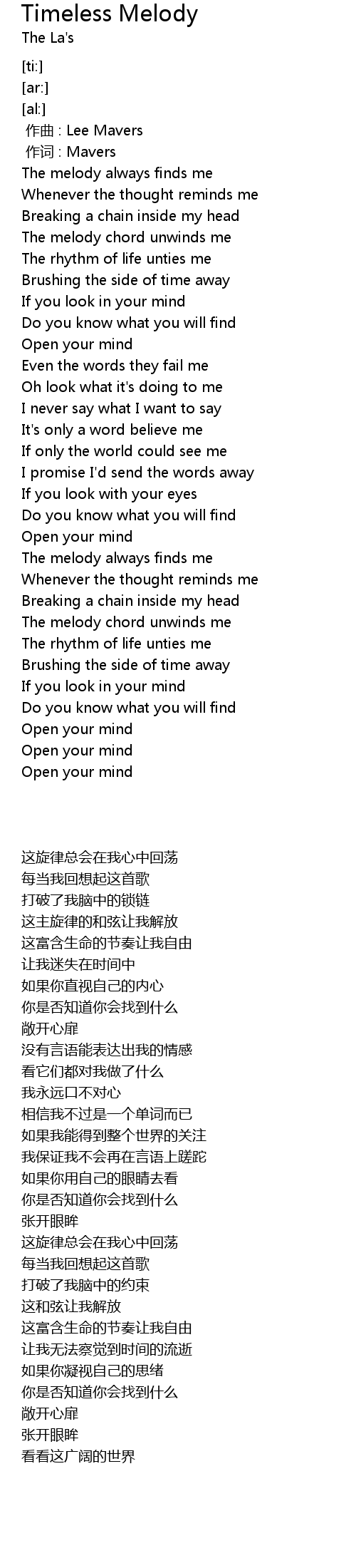| [00:23.47] | The melody chord unwinds me |