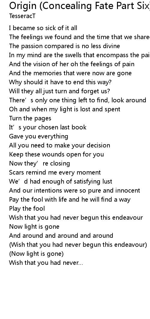 | Song | Origin (Concealing Fate Part Six) |