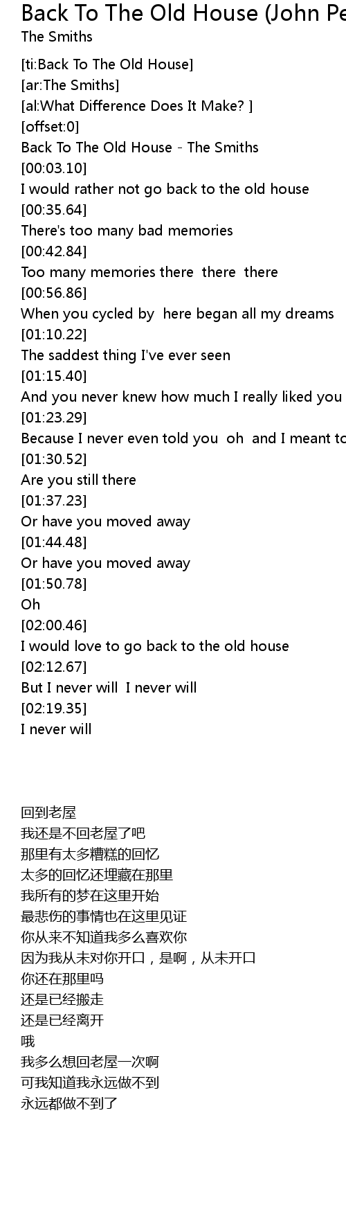 [00:00.54] Back To The Old House - The Smiths