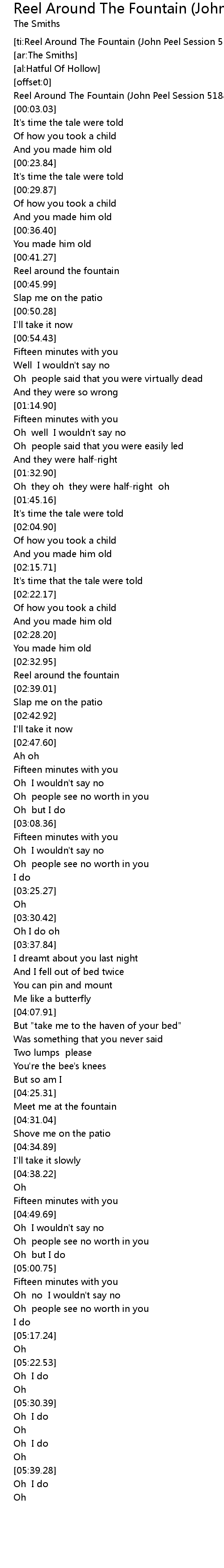 [ti:Reel Around The Fountain (John Peel Session 51883)] |