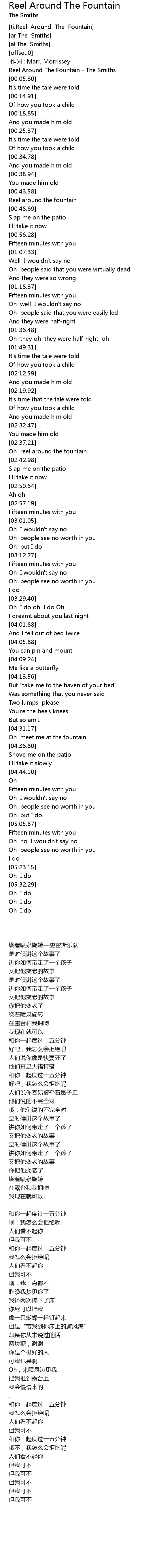 | [00:01.33] | Reel Around The Fountain The Smiths |