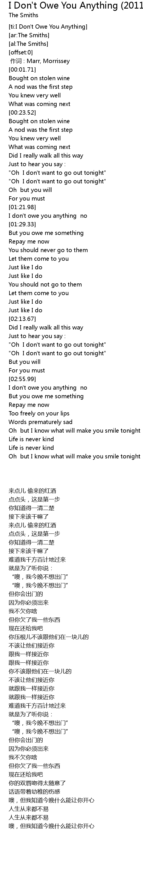 | [00:00.00] | 作词 : Marr, Morrissey |