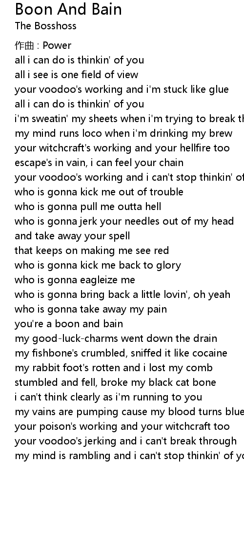 | your voodoo' s working and i can' t stop thinkin' of you | |