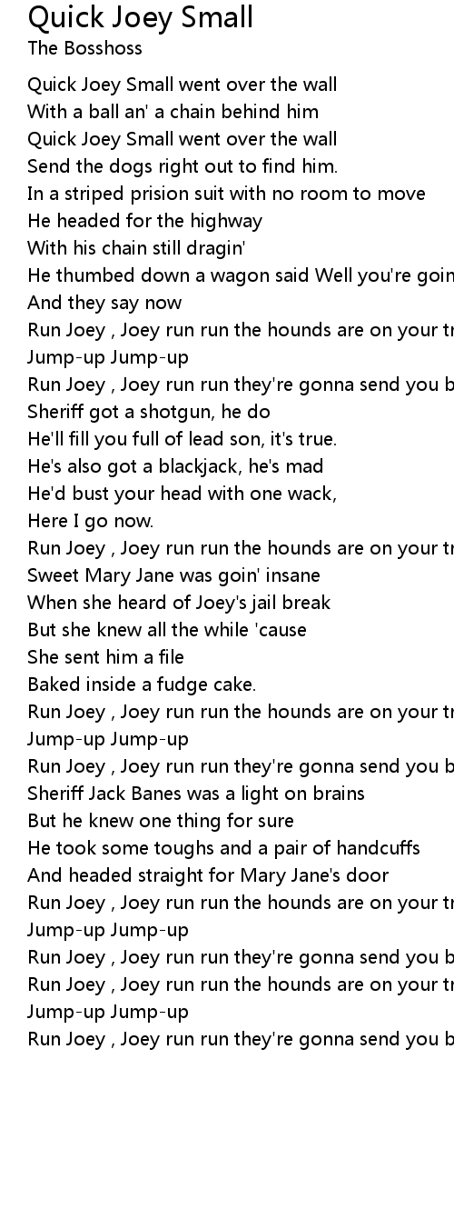 Run Joey , Joey run run the hounds are on your trail. |