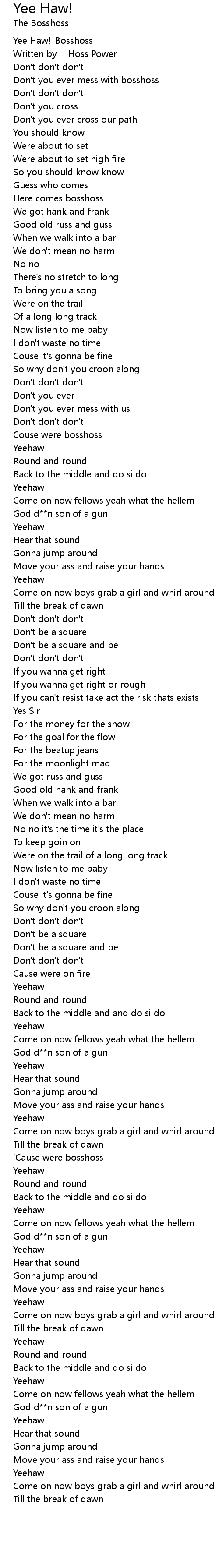 | [00:00.475] | Yee Haw!-Bosshoss |