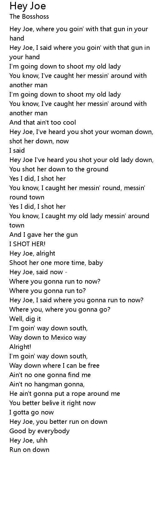 Hey Joe, where you goin' with that gun in your |