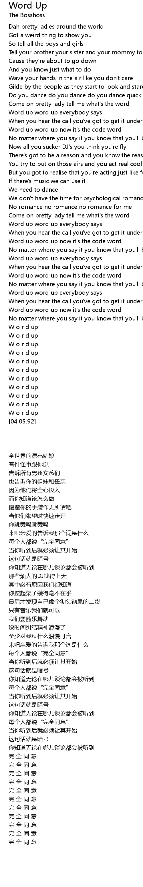 Word up word up everybody says |