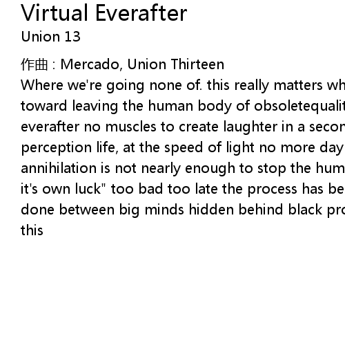 | Where we' re going none of. this really matters what evolution ladder? building toward leaving the human body of obsoletequality your mind in a box a virtual everafter no muscles to create laughter in a second you can change your perception life, at the speed of light no more day and night " the prophecy of annihilation is not nearly enough to stop the human consciousness from pressing it' s own luck" too bad too late the process has begun it' s all been said and done between big minds hidden behind black projects it' s not plausible to deny this |