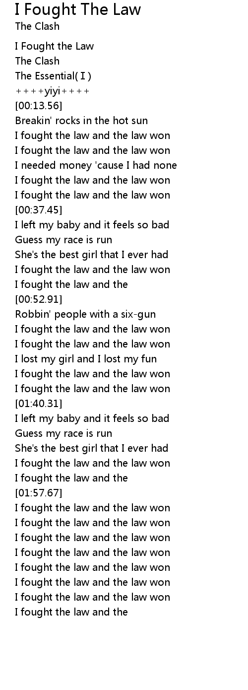 | [00:47.37] | I fought the law and the law won |