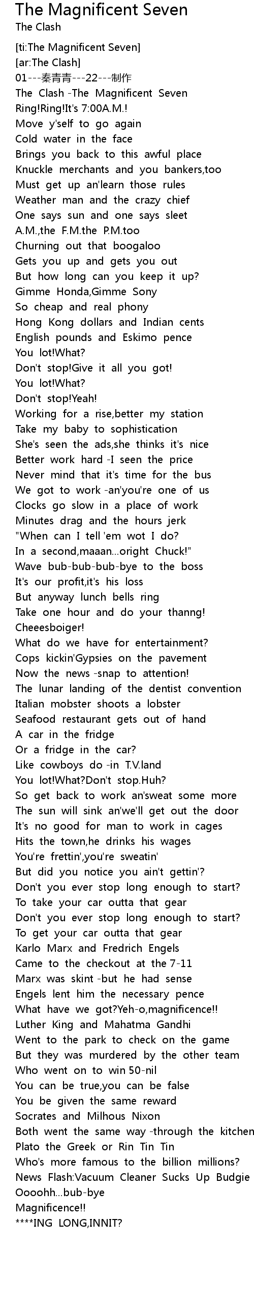 | [00:15.96] | The Clash -The Magnificent Seven |