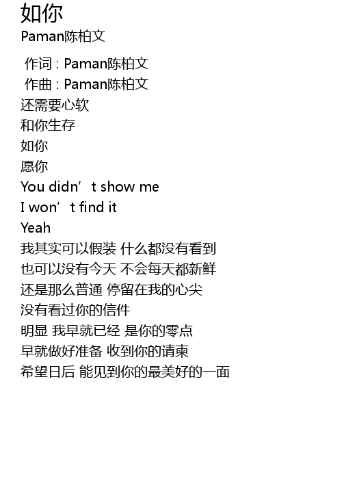| [00:00.000] | 作词 : Paman陈柏文 |