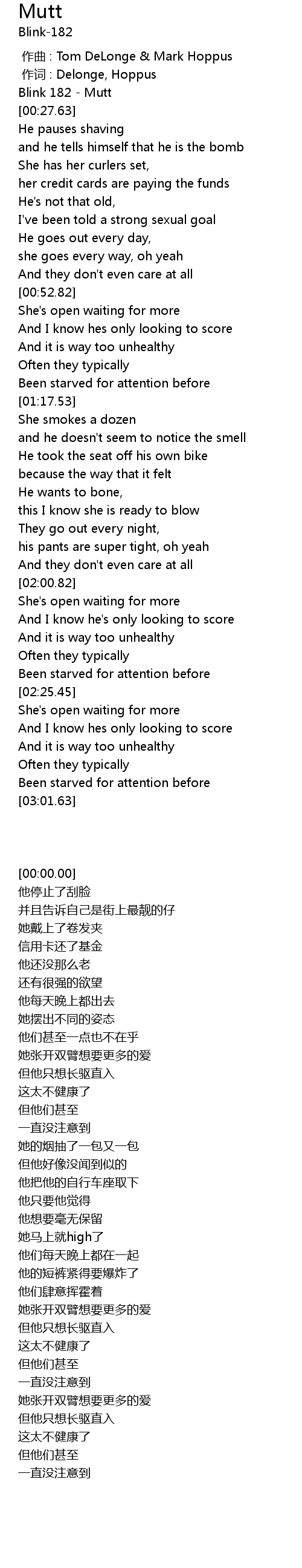 | [00:00.00] | Blink 182 Mutt |