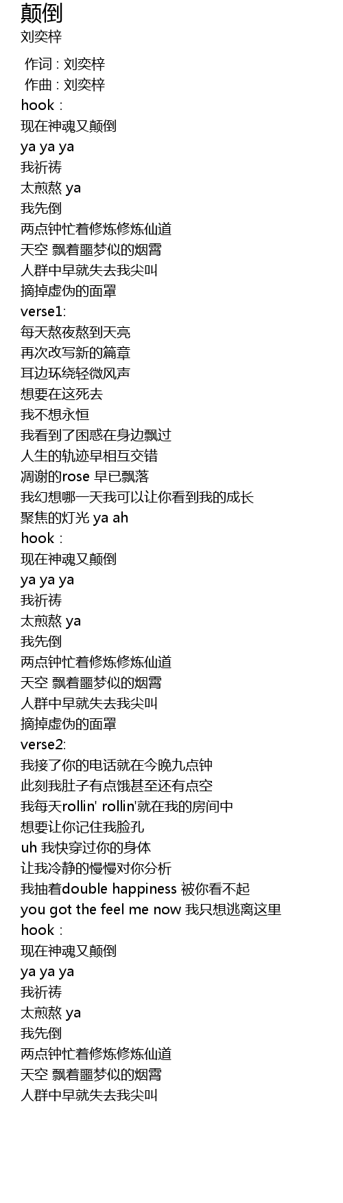 | [00:59.930] | xiàn zài shén hún yòu diān dǎo |