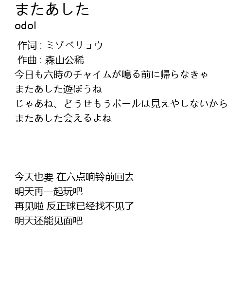 | [00:19.56] | またあした遊ぼうね |
