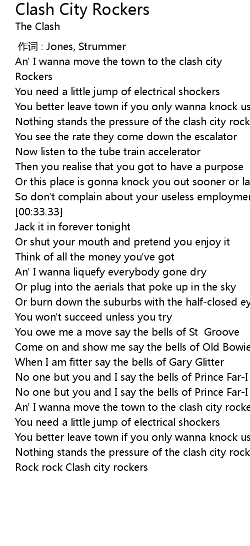 | [02:33.11] | An' I wanna move the town to the clash city rockers |