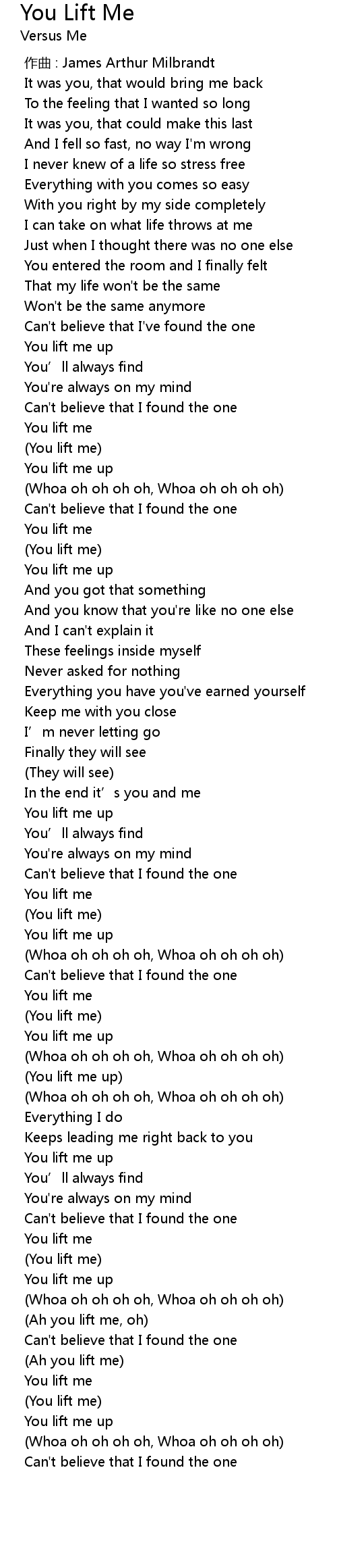 | [03:00.431] | (Ah you lift me, oh) |