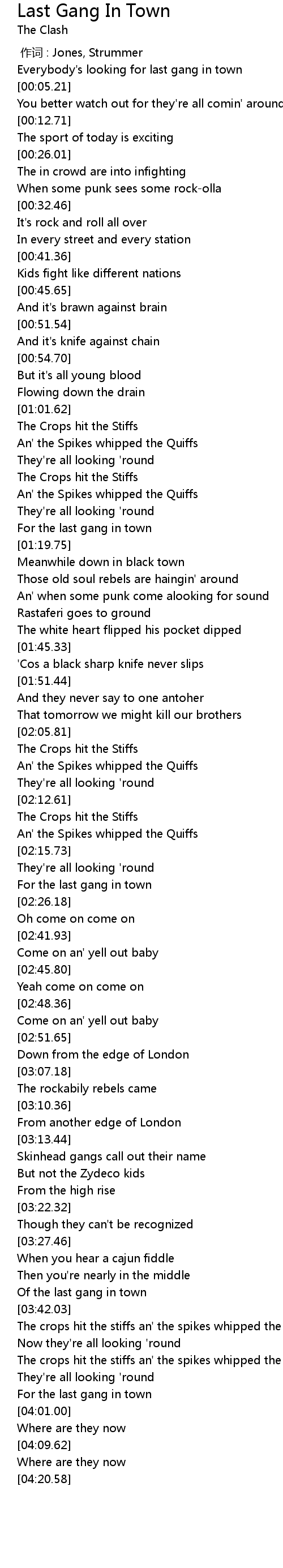 | [00:00.00] | 作词 : Jones, Strummer |