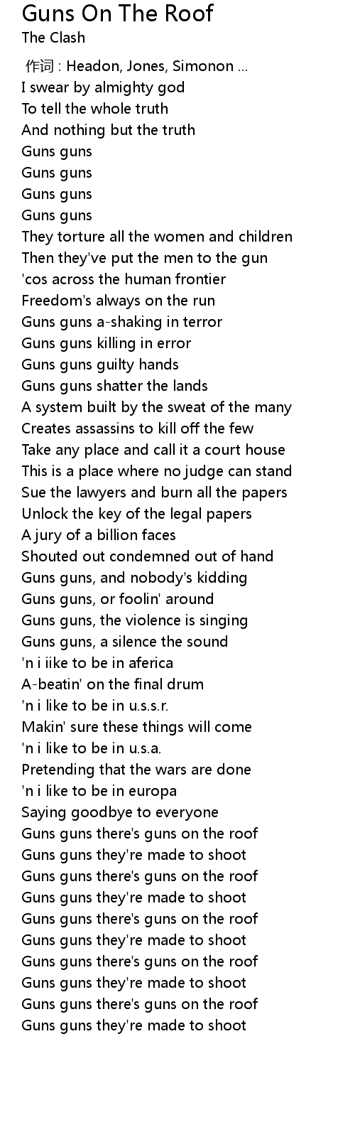 | [03:01.66] | Guns guns there' s guns on the roof |