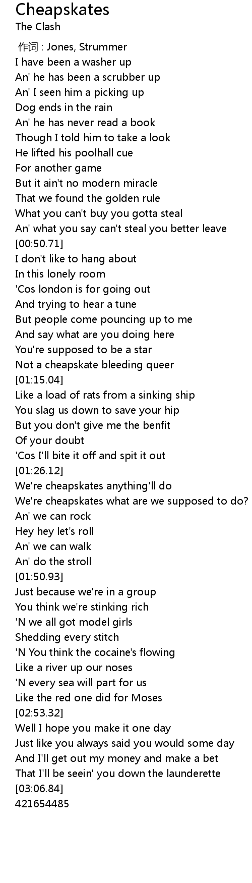 | [00:00.00] | 作词 : Jones, Strummer |