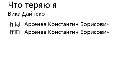 | [00:00.00-1] | 作词 : Арсенев Константин Борисович |