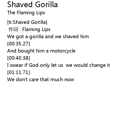 | [00:26.27] | We got a gorilla and we shaved him |