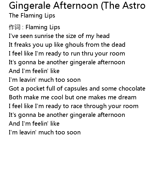| Song | Gingerale Afternoon (The Astrology Of A Saturday) |