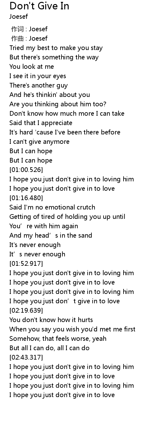 | [02:44.800] | I hope you just don' t give in to loving him |