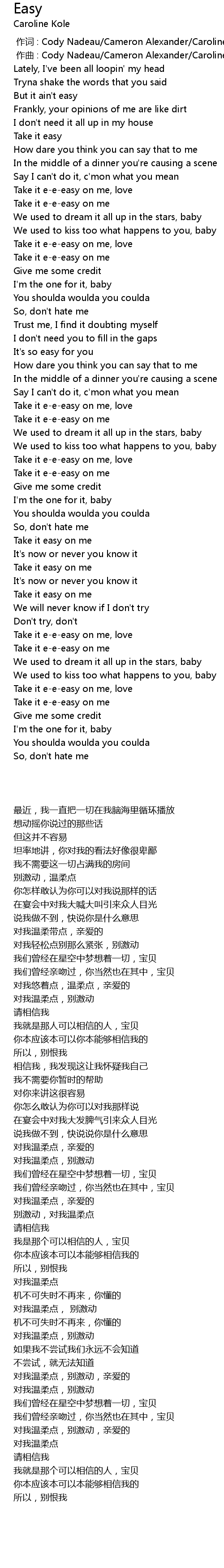 | [01:58.03] | Take it easy on me |