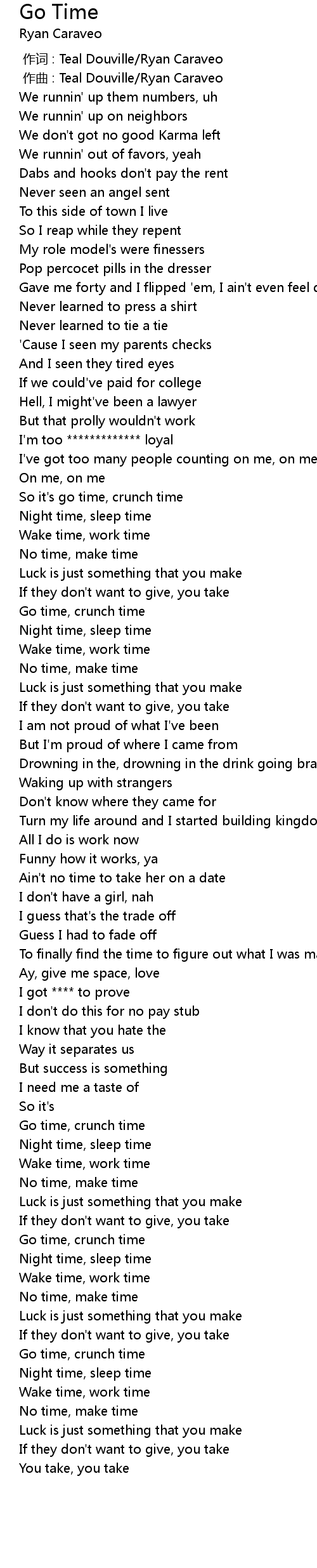 | [01:11.23] | Go time, crunch time |