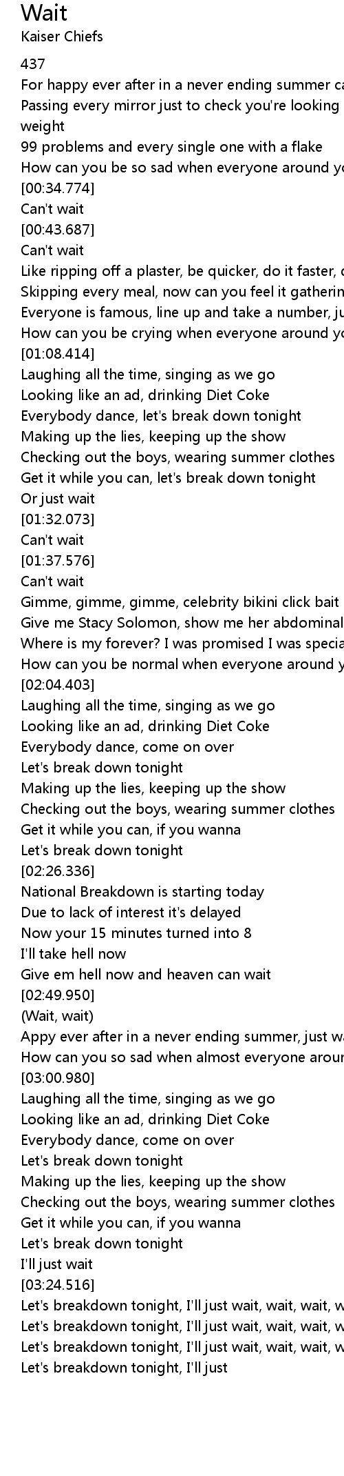 [03:25.427] Let's breakdown tonight, I'll just wait, wait, wait, wait