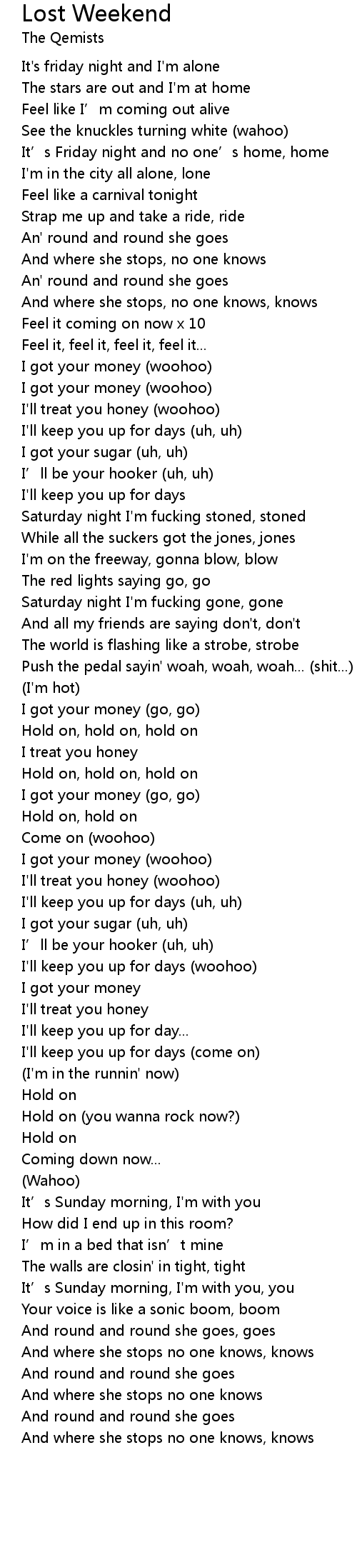 | [01:54.57] | Saturday night I'm fucking gone, gone |
