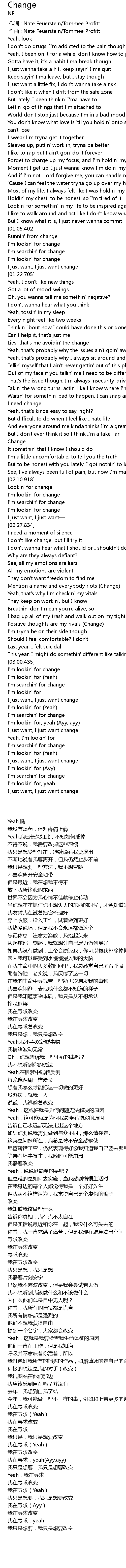 | [03:32.424] | I just want, I just want change |